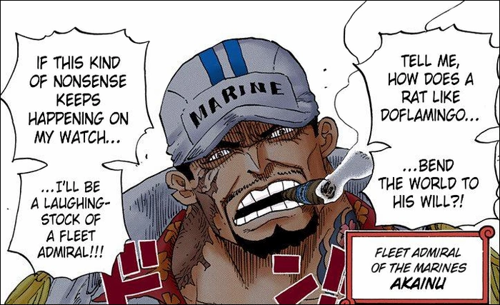 Классификация: Человек, Главнокомандующий Морского Дозора с наградой за голову в 5 миллиардов белли, в прошлом Адмирал Морского Дозора, пользователь Дьявольского Фрукта