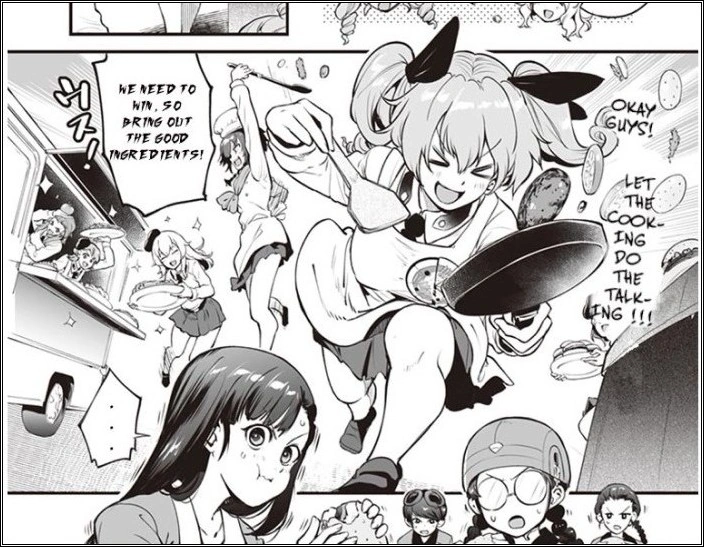 - Кулинарные тренировки - но как бы велик не был авторитет Анчови, культ еды в школе куда выше стремления к победам, танкам и боям с тренировками, потому Анчови пришлось совместить кулинарную одержимость своих подопечных с танками. Все тренировки так или иначе проходили под видом кулинарных фестивалей, где в рамках битв происходил попутный обмен рецептами, блюдами и обеденными традициями между разными странами. Кроме этого все планы Анчови так или иначе шифровались и выстраивались, как кулинарные боевые рецепты, а на тренировках стимулами всегда была готовка, едва и кулинария в том или ином виде. В итоге это позволило школе "Анзо" довольно быстро выбиться из общей массы танковых школ. Ну а ещё её стряпня помогает танковому делу, ибо она разработала какое-то специальное танковое топливо на основе масла, бензина и лука, которое каким-то образом улучшило её танк...не ясно как правда.