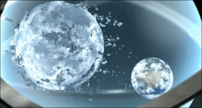 - Вокруг Земли образовалось громадное кольцо осколков Луны, которые за счёт гравитации будут притянуты на Землю, тем самым пролившись на её поверхность смертоносным дождём метеоритов, летящих на огромной скорости.