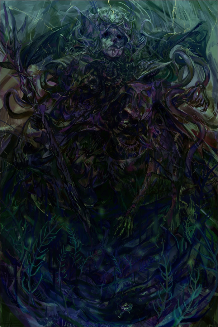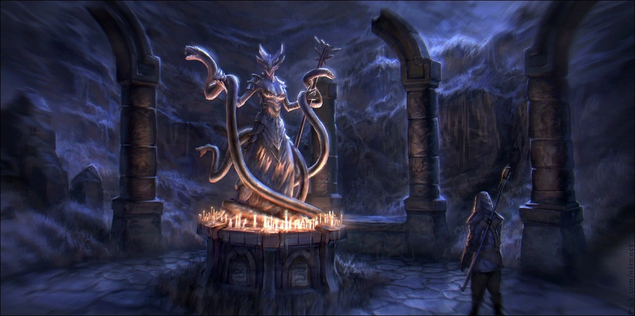 Омены – глубинах Трясины обитает даэдра, давно жаждущий причинять боль и страдания смертным Нирна, распространять ложь и обман в их мире, полном безвкусного и пестрого блеска. Из всех подручных Вермины этот даэдра остается самым незаметным, самым скрытным. Он известен под многими именами, но ни одно из них не является истинным, и потому многие столетия никому не удавалось его призвать.