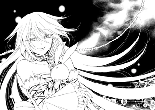 Кровавый Чёрный Кролик『血染めの黒うさぎ』– 100 лет назад Джек попросил Белую Алису превратить её игрушку Оза в цепь, способную низвергнуть вселенную на самое дно Бездны. Именно так был рождён Кровавый Чёрный Кролик, с которым впоследствии заключит контракт наследник семьи Безариус. Данная цепь выглядит как огромный антропоморфный чёрный кролик в роскошном костюме с белым бантом. Его физические характеристики находятся на невероятно высоком уровне. Он может с лёгкостью уворачиваться от пуль, выдерживать огненные атаки контракторов Пандоры, сражаться с цепями по типу Бармаглота и многое-многое другое. Один лишь его удар когтями способен разорвать в клочья несколько крупных деревьев. Важно отметить, что если обычной цепи для перемещения во вселенную достаточно воспользоваться простым мерным разломом (путём), то для Чёрного Кролика нужны одни из 5 гигантских врат герцогских домов.