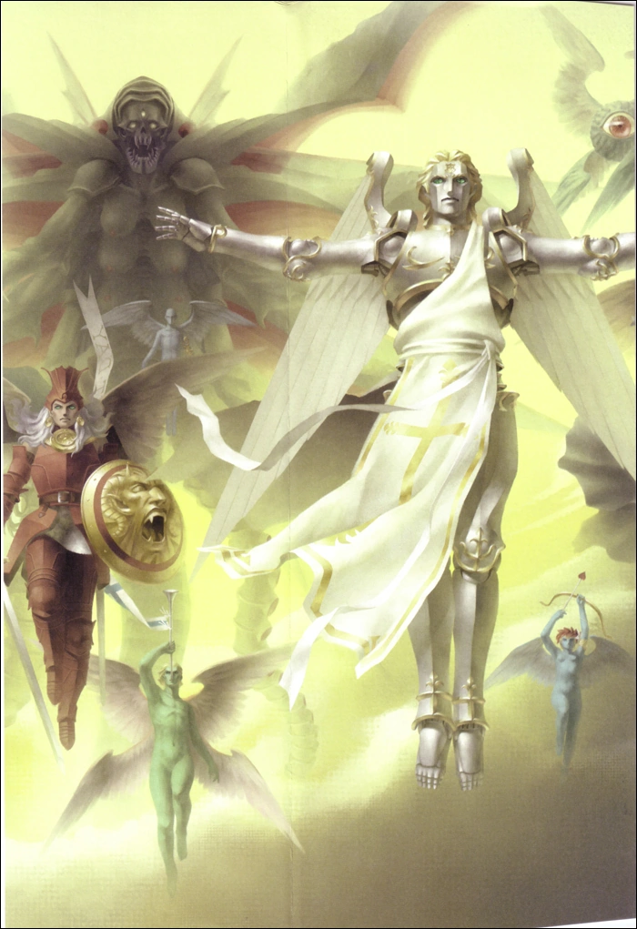 - Создание пантеонов - древние боги и их пантеоны подчинились ЙХВХ, тот возымел над ними полный контроль с способностью менять, создавать и уничтожать. И помимо этого, ЙХВХ породил новые пантеоны богов, где есть иные Создатели, творящие собственные миры. Так он внес некие коррективы в иные религии, сформировал и ответвления по типу христианства со всевозможными ангелами, божествами и демонами. После этого ЙХВХ разбил всех подконтрольных мистических существ на 2 стороны - Закон и Хаос. Первая осуществляет поддержание божественного порядка, спокойствия и полного подчинения ЙХВХ, якобы следует воле Бога, его свету. К ней относятся ангелы и все иные боги, которые связаны с аспектом закона и поддерживают ЙХВХ, а возглавляют эту сторону аспекты ЙХВХ. Вторая олицетворяет стремление к свободе, анархии, миру, где правит не один Бог, а сильнейший, что приведет к переходу мира в Хаос. Эту сторону возглавляет Люцифер, падший сын ЙХВХ. На самом же деле все эти стороны являются подконтрольными пешками ЙХВХ, осуществляющими его сценарий. Стоит отметить, что существует третья сторона, Нейтральная, однако она частично так же подконтрольна, а частично действует по желанию Великой Воли, поэтому выступает нарушителем спокойствия мироздания ЙХВХ.