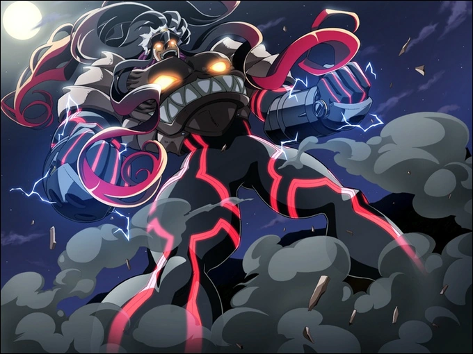 Умения, силы и способности: Сверхчеловеческие физические характеристики, нечеловеческая физиология, сверхчеловеческие чувства, рукопашный бой, фехтование, полёт, ударные волны, энергетические атаки, манипуляции энергией, манипуляции светом, манипуляции электричеством, аура (взрывная), экстрасенсорное восприятие (сенсоринг), сопротивляемость (к электричеству), изменение формы (тип 1), бессмертие (тип 3) ◄► Энергетические атаки, манипуляции электричеством, манипуляции огнём, огромный размер (тип 1), аура (взрывная, катастрофическая)
