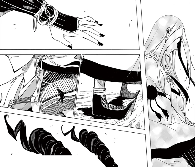 - Огромный размер - Муши способен принимать форму огромной гусеницы, которая в десятки раз больше различных гор. И при этом способен изменять собственный размер.