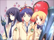 - Манипуляции личностями — мощные способности мозга позволяют Такуми создавать целые личности в своей голове или манипулировать чужими. Как было указано выше, воображаемая Сейра стала его настоящим альтер эго. Созданные на основе прочтённых мыслей и воспоминаний жители миниатюрной Шибуи в голове Такуми потенциально могли быть полноценными индивидами. Стоит добавить, что в руте Рими он смог соединить все её рождённые в результате многолетних пыток личности в одну и позволил девушке вспомнить своё прошлое, приняв себя такой, какая она есть.