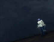 — Не смотри на меня. Уже некоторое время моё тело не перестаёт дрожать. Не из-за холодного дождя, а скорее из-за ледяных обломков, упирающихся мне в спину. Ужасно холодно. Взгляд пронзает меня. Никто не знает, кому он принадлежит. Будто пытаясь спастись от него, я слегка приподнимаю голову и осматриваюсь. Там простирается разрушенный город... Там простирается отчаяние... Там простирается смерть... Там простирается пустота... Никого нет. Никто не двигается. Ни одной живой души. Всё, что я могу слышать, это звук дождя, продолжающего идти. Если всё так продолжится... то будет ли и живоё, и мёртвое... бережно окутано и смыто отсюда? Как бы мне хотелось, чтобы всё произошедшее было плодом моих фантазий... но, очевидно, это не так. Тело не двигается. Единственное, чем я могу пошевелить, это шея. Моё тело дрожит, но это просто физиологическое явление. Это не моя воля. Я не хочу дрожать. Если не могу свободно управлять своим телом, значит оно не моё. Или, может быть, я не был свободен с самого рождения. Никто не знает, где хранится душа. Тогда кто может говорить, что моя душа находится внутри этого тела? Но... в таком случае где я нахожусь? Я здесь? Я нигде? Внезапно в этом по-прежнему разрушенном мире эхом раздались звуки, отличные от шума дождя смерти. Единственное, одинокое существование, возникающее среди этого небытия. — Кто ты? Твоя кожа выглядит бледной... потому что ты замерзаешь под холодным дождём? Или потому что ты уже мертва? И всё же девушка не дрожит. И эти её глаза, почти скрытые чёлкой... Не смотри на меня. Они выглядят очень грустными. Они выглядят немного безумными. Они выглядят, будто не отражают ничего. Если... в мире остались только я и она. И так мы бы вечно смотрели друг на друга... Будет ли мой мир всем, что отражается в её глазах? Будет ли её мир всем, что отражается в моих глазах? То, что я вижу в её глазах, это я. То, что она видит в моих глазах, это она. Когда я так думаю, мир мгновенно становится меньше. Неожиданно очень красивый звук достигает моих ушей... Она опускает голову... и широко расправляет руки... как будто собираясь взять и взлететь высоко к дождевым облакам. Или будто пытаясь поймать все падающие капли дождя. — Всё, что смотрит на тебя, это делюзия. С того места, где я нахожусь, я не могу увидеть выражение её поникшего лица. Какое лицо ты прячешь за этой тонкой пеленой дождя? — Я дарую тебе вечный покой. Дико танцующие перья света благословляют меня или... А... Вот как. Я наконец-то понял. Она собирается использовать "это", чтобы убить меня... Девушка медленно опускается на колени перед моим лежащим телом. Всё ещё с опущенной головой она нежно берёт мою в свои руки. Из-за того, что она не смотрит на меня, я почувствовал облегчение и просто сдался. Я слышу шёпот. Приятный звук. Но... я плохо её слышу. Мягкое... тёплое... нежное... приятное ощущение. Подобно анестезии... моё дрожащее тело странным образом начало расслабляться. Её слабое дыхание щекочет мне щёки. Оно так приятно пахнет. Внезапно я почувствовал давление в груди. Огромный меч в её руках начал разрывать кожу на моей груди, врываться в мою плоть, переплетаться с моими костями и медленно погружаться в моё тело. Но под анестезией её поцелуя я больше не чувствую боли. Из-за того, что меня убивают так нежно... мне становится тяжело на душе и я вот-вот расплачусь. Чтобы их скрыть, я смотрю на пасмурное небо над её 