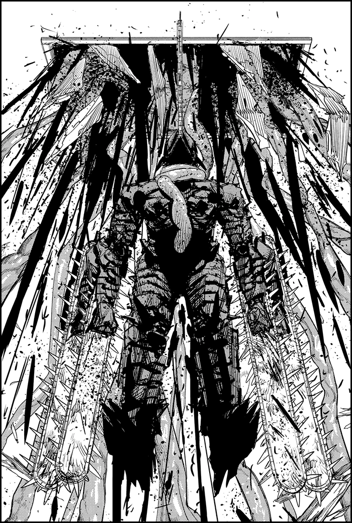 瀕死の変 」— особая форма существования, доступная некоторым демонам и пробуждающаяся, когда их тела оказываются на грани смерти. В таком состоянии они теряют большинство своих сил, нисходя до уровня животных, из-за чего, порой, даже становятся неузнаваемыми. Для Почиты такой формой оказалась собака с торчащей из головы бензопилой и шнуром для ее запуска, находящимся на хвосте.
