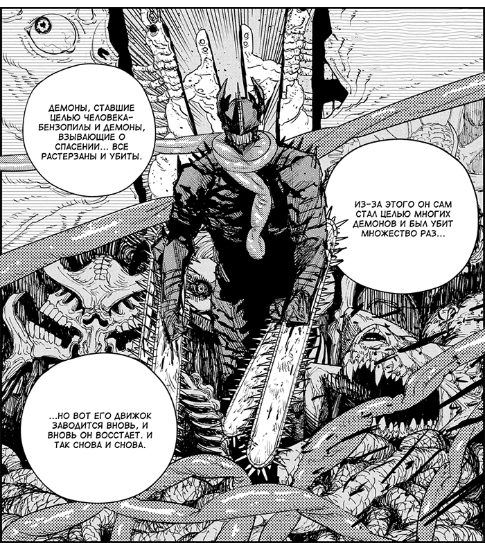 能力 」— набор особых умений, индивидуальный для каждого демона. Связан с идеей, которую он воплощает и требует определенных затрат крови для своего использования. Способности демона-бензопилы, в соответствии с его именем, завязаны на бензопилах и силах, ассоциируемых с ним.