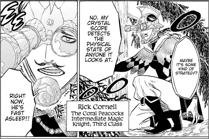 水晶魔法『クリスタルスコープ』 」 — Заклинание поддержки, которое позволяет использующему его магу видеть на дальние дистанции так хорошо, будто бы он сам там находится.Форма магии 「形態の魔法 」 — маг расходует ману, приводя в движение магию различных форм. Даже с одним и тем же атрибутом форма магии будет отличаться, поскольку она определяется исходя из индивидуальных качеств мага. Чаще всего чародеи работают в группах по три человека, что бы восполнять слабости друг друга. Всего существует семь известных форм магии.Магия созидания 「創成魔法 」 — форма магии, которая даёт возможность волшебнику придать форму своей магической силе, тем самым создав какой-либо объект. Это может быть как средство атаки, так и защиты, поскольку форма созидаемого предмета, как и его дальнейший контроль, зависит только от воображения мага,Магическое тело , созданное посредством данной формы колдовства, будет иметь эффекты соответствующие атрибуту пользователя. Например, для магов ветра свойственно создавать объекты состоящие из ветра, аналогично и с другими аспектами.Магия ограничения 「拘束魔法 」 — поддерживающий тип магии, позволяющий пользователю создавать удерживающие заклинания на основе своей стихии, чтобы ограничить движения поверженного врага, а также запечатать его ману.Магия укрепления 「強化魔法 」 — Проводя через своё тело магическую силу маг способен значительно увеличить свои физические характеристики и боеспособность. Зачастую волшебники используют данный тип неосознанно, так или иначе усиливая свои способности. С потерей магической силы постепенно уменьшается и физическая сила, в следствии чего маг будет двигаться медленнее, а бить слабее.Кожа из маны 「マナスキン 」 — если усиление своего тела с помощью магической силы - это основа любого мага, то это вершина отточенной магической основы. Кожа из маны представляет собой некую оболочку вокруг тела пользователя, что повышает его сопротивляемость ко всем формам магии и аномальной окружающей среде, а так же в разы увеличивает физические характеристики.