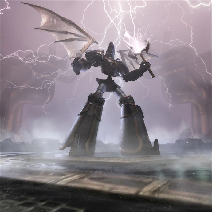 Несовершенство – огромный боевой механизм значительно превосходит другие как по функциональности, таки и по чистой мощи, в отличие от меньших фактотумов, этому автоматону для работы требуется полностью заряженный оживляющий сердечник.