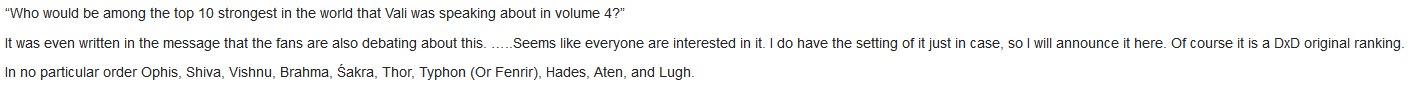 - Физические характеристики - Фенрир, как одно из сильнейших существ своего мира, до потери своих сил, обладал колоссальной физической силой, прочностью и скоростью. На момент 7 тома в одиночку превосходил вместе взятых всю команду Гремори, команду Вали, Таннина, Россвейсу и Баракиэля. Во время битвы главных героев с Локи, угроза исходящая от Фенрира была гораздо выше чем от самого Локи. Даже сыновья Фенрира не обладающие даже близко сопоставимыми с Фенриром характеристиками, способны выдерживать удары Таннина, получая некоторые повреждения. В данный момент его силы значительно уменьшены.