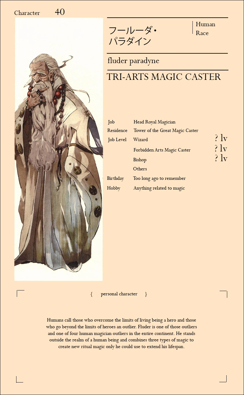 Классификация: Человек, Заклинатель Магии, Мистик, Заклинатель магии Веры, Заклинатель духовной магии, Глава Министерства Магии Империи, Верховный придворный маг