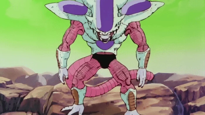 - Вторая форма - следующая по силе форма Фризы. Его вторая форма выглядит как более зрелая версия первой формы. Это его самая высокая форма, трансформация в которую делает его больше двух метров ростом, а его мышечная масса становится одинаково больше, в то время как телосложение становится более массивным и четким. В этой форме его уровень сил равняется одному миллиону.