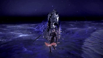 - Нечеловеческая физиология — Образ Ночи имеет дополнительную конечность и всё его тело состоит из густых синих миазмов. Его тело полностью окутано лентами, на которых изображен святой орнамент, сдерживающий его настоящую сущность, и, по всей видимости, являющийся делом рук неизвестных добровольцев, что безуспешно пытались остановить ходячую катастрофу. Левая рука Повелителя пригвоздена кинжалом, пронзающим его грудь, а его третья рука привязана к Лунному двуручнику, что висит на его спине. Попадая в критическое положение, тот освобождает свои конечности, а также начинает использовать все имеющиеся при себе оружия.