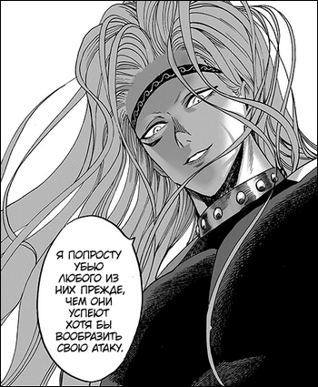 Умения, силы и способности: Сверхчеловеческие физические характеристики, нечеловеческая физиология (в форме монстра), бессмертие (тип 2), изменение формы, рукопашный бой, фехтование, манипуляции нитями, слэши, ударные волны, регенерация (тип 2), аура (устрашающая, подавляющая), сопротивляемость (электричеству, температурная, биологическая, духовная, ментальная)