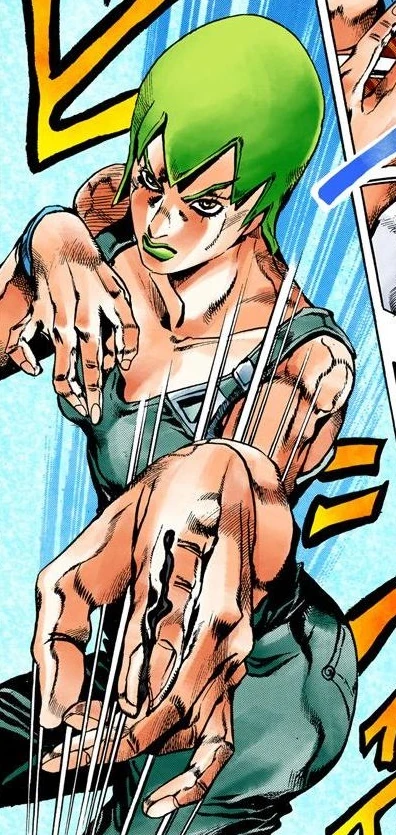 Стэнд: Foo Fighters - стэнд представляет собой что-то вроде персонифицированного олицетворения сущности/духа пользователя в виде человекоподобного призрачного существа,невидимого для обычных людей. Foo Fighters сильно отличается от прочих стэндов - её тело представляет из себя вязкую массу из множества маленьких стэндов, способных делится и морского планктона, которому эти стэнды принадлежат - таким образом она является одновременно и стэндом, и хозяином. По этой причине она способна менять форму и собираться заново, даже если её тело будет разорвано на куски. Foo Fighters останется в живых до тих пор, пока жива хотя бы малая часть планктона, и способна быстро регенерировать даже из небольшого кусочка тела при наличии воды. Она сохраняет контроль над всей массой тела, что позволяет ей использовать небольшие кусочки себя для того чтобы атаковать противника или разделятся на части, создавая свои копии.